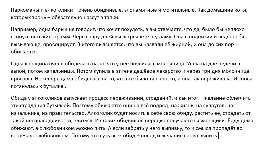 Потом умер отец, а барыгу прикрыли. В жутком депрессивном состоянии стал много пить, начались запои. Доходило до 6 литров пива в день. Потом первый раз закодировался, наконец-то прожили год нормальной трезвой жизни. Снова увидел Катю счастливой. Сорвался на траву, снова алкоголь, амфетамины, кодирование, снова по кругу, алкоголь, трава, порошки. Перестал верить, что избавлюсь от зависимости. Стал депрессивным, апатичным, безинициативным, желчным, пессимистичным. В общем, так пролетели ещё лет 8 жизни. Уже понимал, что зависимость ставит крест на нормальной жизни. После очередного марафона поссорились с женой, Катя решила разъехаться, потом разводиться. Но нашла форум, приехала обратно, прошли изоляцию. Полтора года прекрасной трезвой жизни, потом всякие стрессы, ху.ессы, проснулась тяга, раскачал, депресняки, психиатр, АД и транквилизаторы, в конце амфетамин.