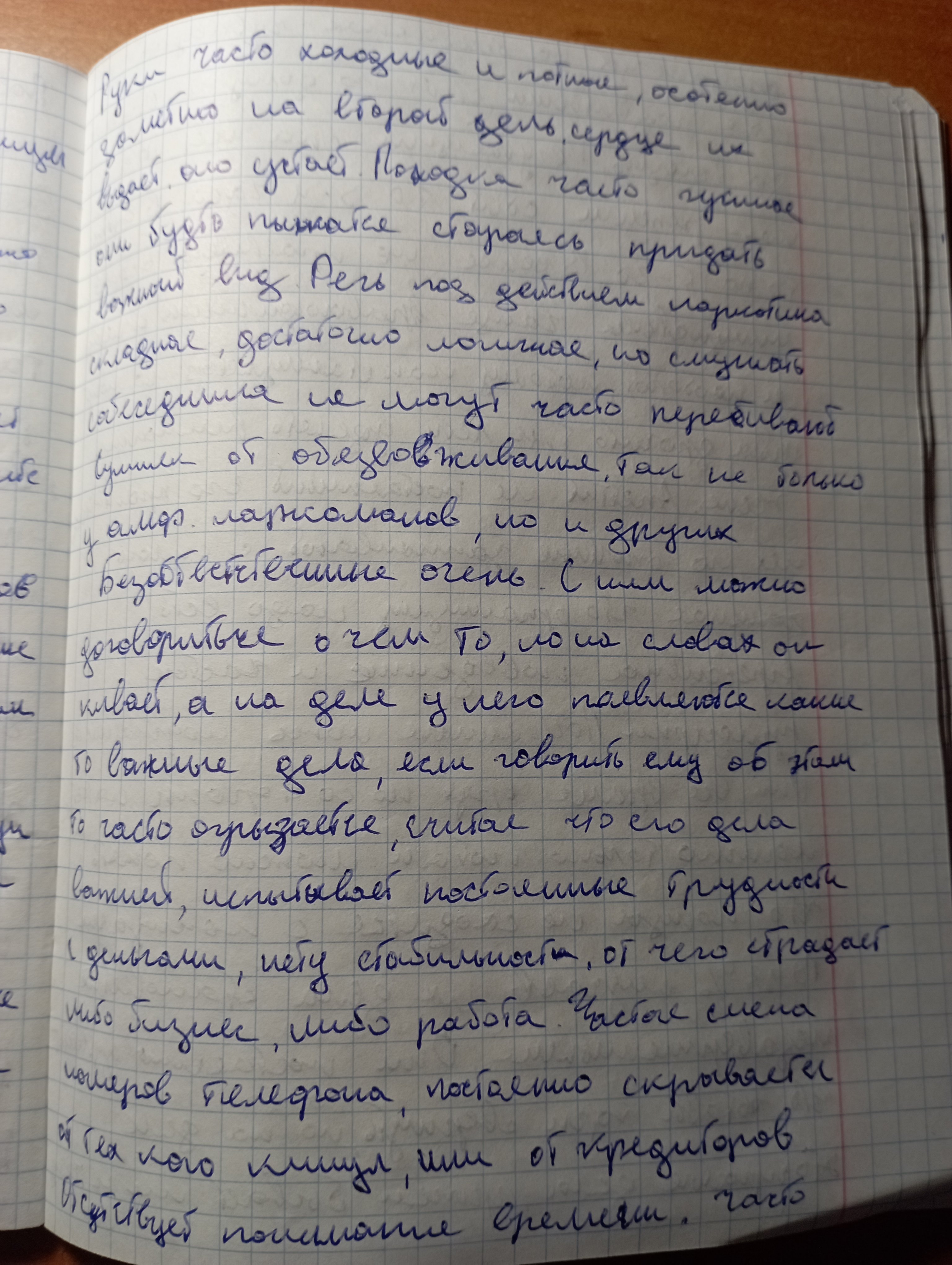 Ещё ты очень сильно потел, как будто у тебя жар, возможно была даже температура. По незнанию, действительно, я могла бы подумать, что ты простыл. Потел так, что всё было мокрое и воняло