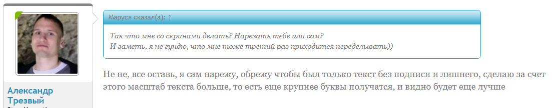Ну вот как так получается, что у тебя текст ответа на цитату вылезает в длину и торчит справа грыжей?