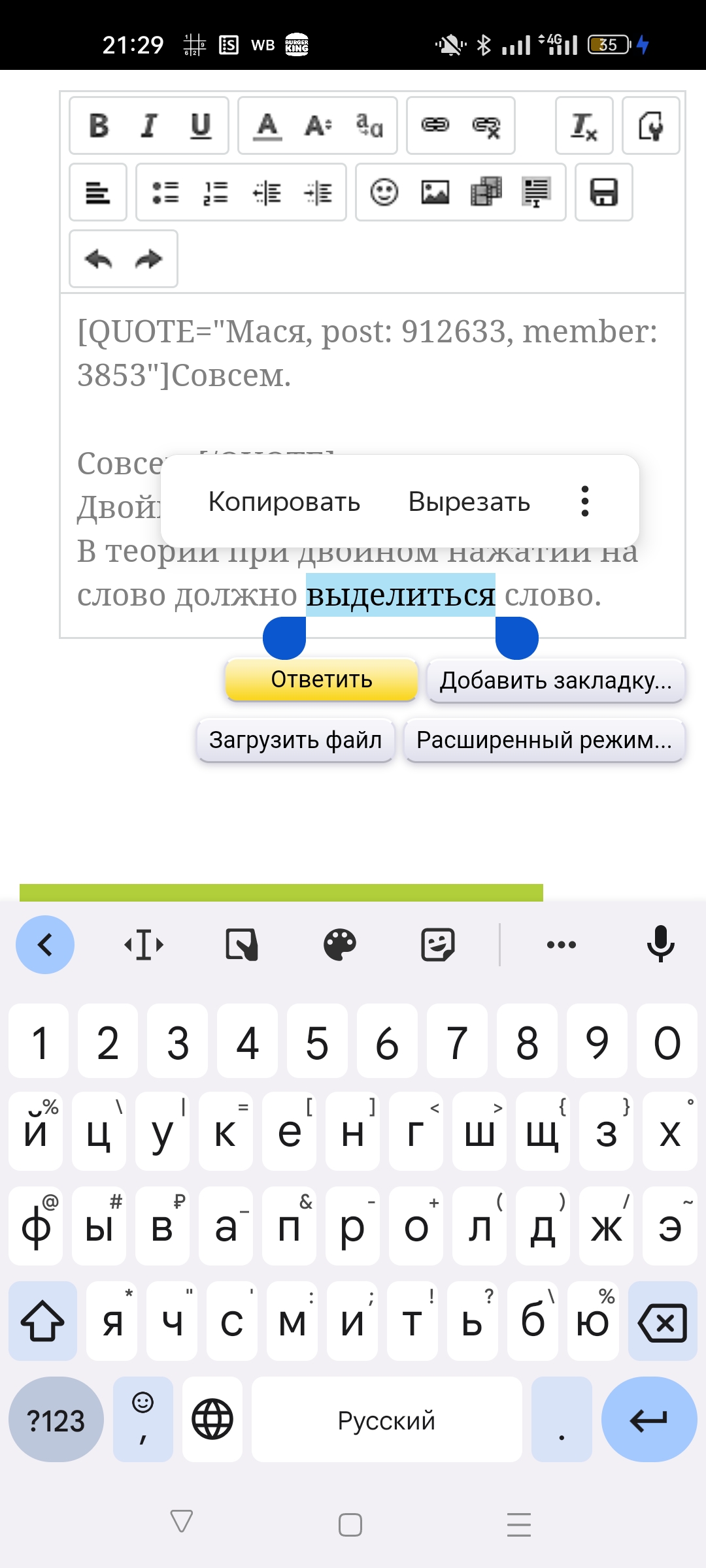 В теории при двойном нажатии на слово должно выделиться слово. И появится такое меню.