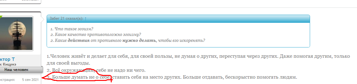 Ты вопрос-то видел? У него спросили, как бороться с излишним эгоизмом.