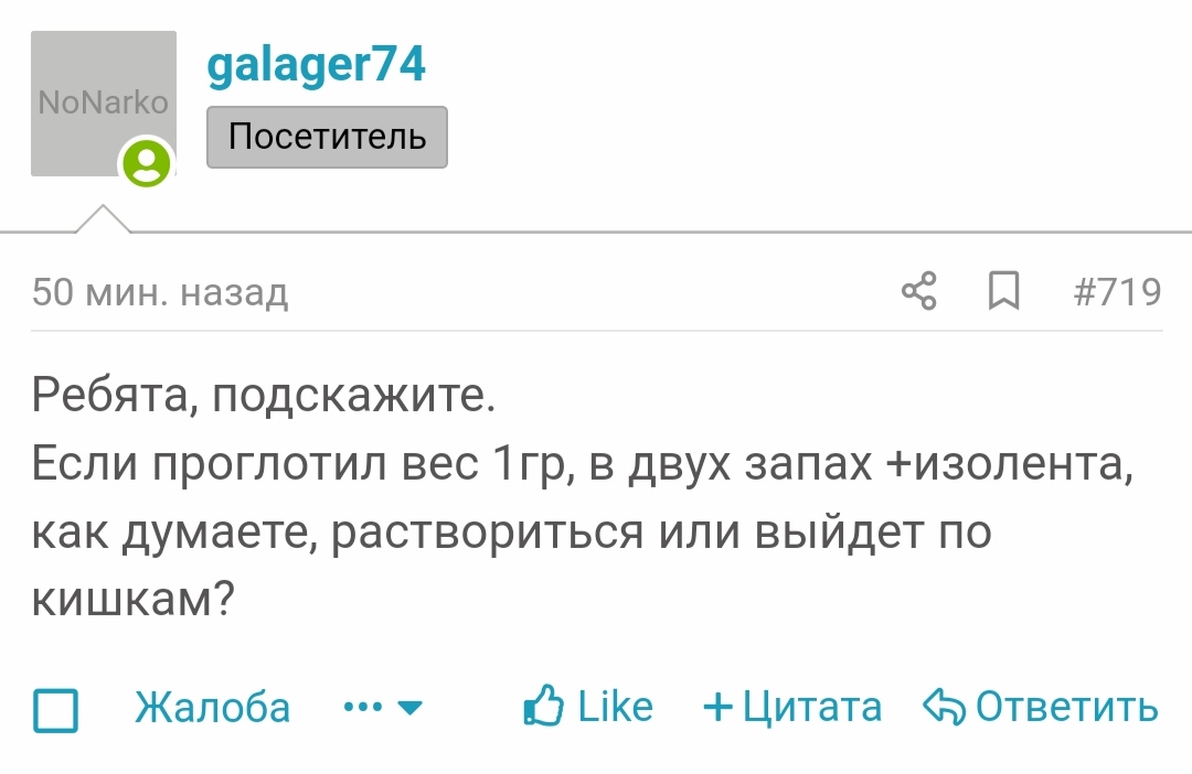 И нет смысла списывать что форум протух из за литры, раньше все активно разбирали писанину лечащихся т.к это было тупо удобно. Потом это стало не удобно, потом расскол на почве полит взглядов вот и итог. Я вижу причину тухляка в этом, а не в собрании в закрытом разделе раз в 2-3 недели или чате в телеге которым никто не пользуется.