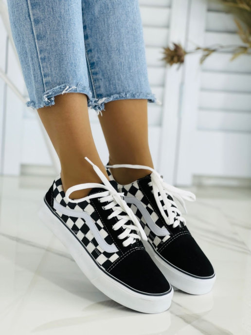 Или кеды вансы с шашечкой под джинсы