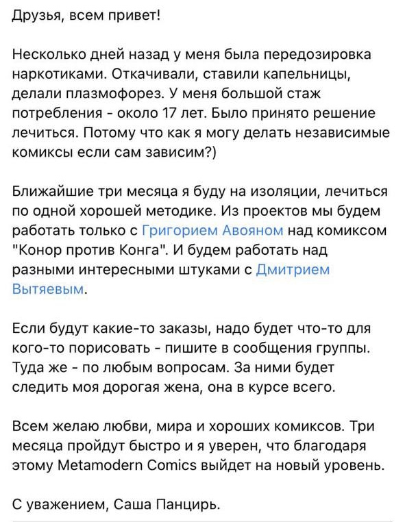Он сегодня написал пост ВК про то; что передознулся. Пафосный, ещё и меня там упомянул.